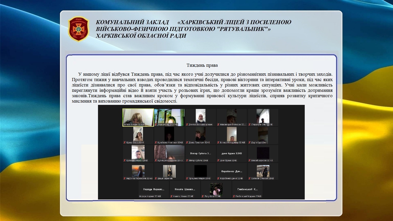 КЗ «Харківський ліцей з посиленою військово-фізичною підготовкою "Рятувальник"» Харківської обласної ради © 2019 Funky Line